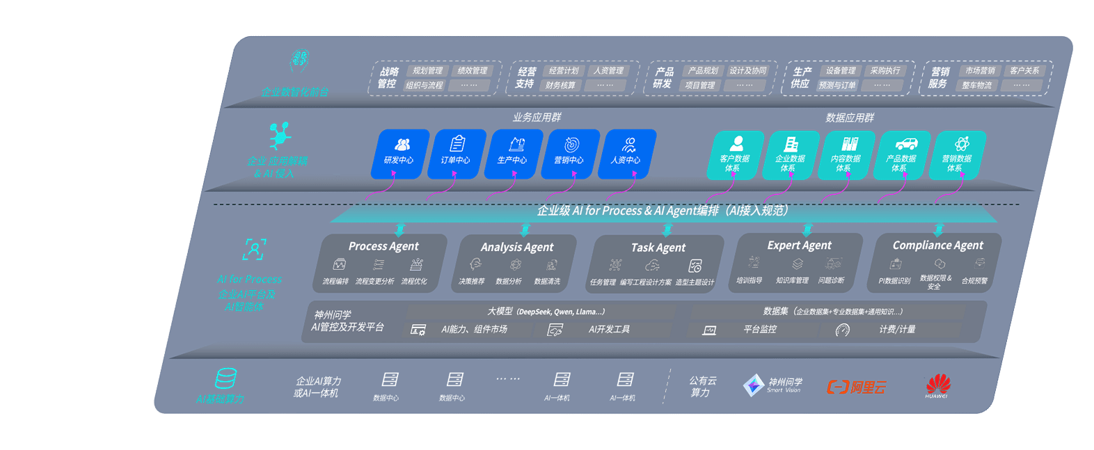 端到端的一站式AI工作空间深度融合了从企业战略规划到日常经营的全流程业务板块,,定向解决车企内部领域多、、、部门多、、、链条长、、、、场景碎片化等难题,,,支持车企快速构建以AI为核心的生产力写作体系,,,,实现任务执行与AI能力的无缝集成与交互
