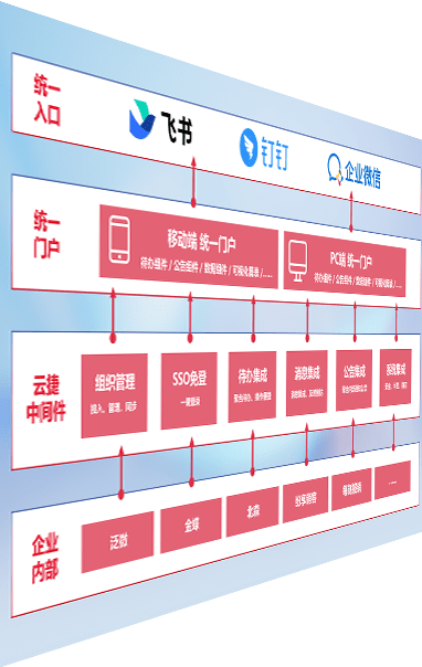 对协作平台提供支持服务,,,,支持企业应用与协作平台对接,,包含组织同步、、、消息集成、、、待办集成等。。。支持目前主流的协作平台:钉钉、、、企微和飞书。。。