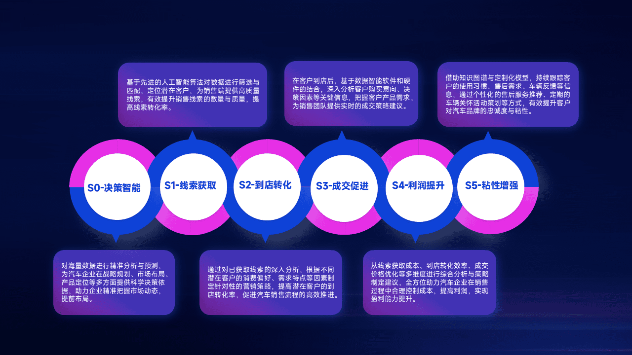 通过拓宽潜在客户来源、、、、优化线索分配并提高到店转化率,,,以增强销售效率。。。。同时,,,利用线索数据不断优化分析模型,,有效提升转化率,,扩大营销影响力。。。